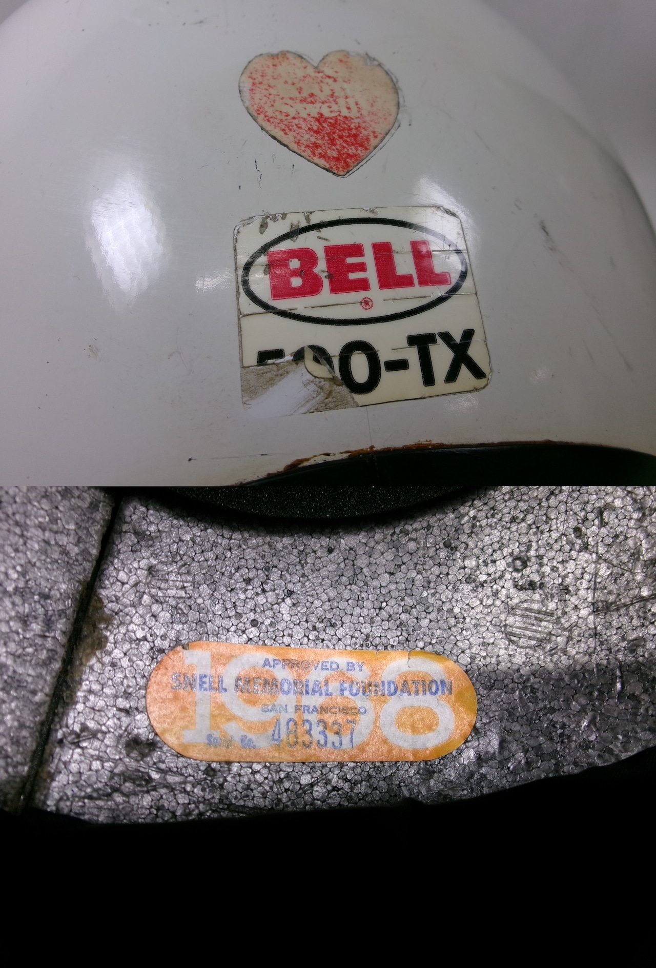 60年代(SNELL1968) BELL 500TX ジェットヘルメット Lシェルです。