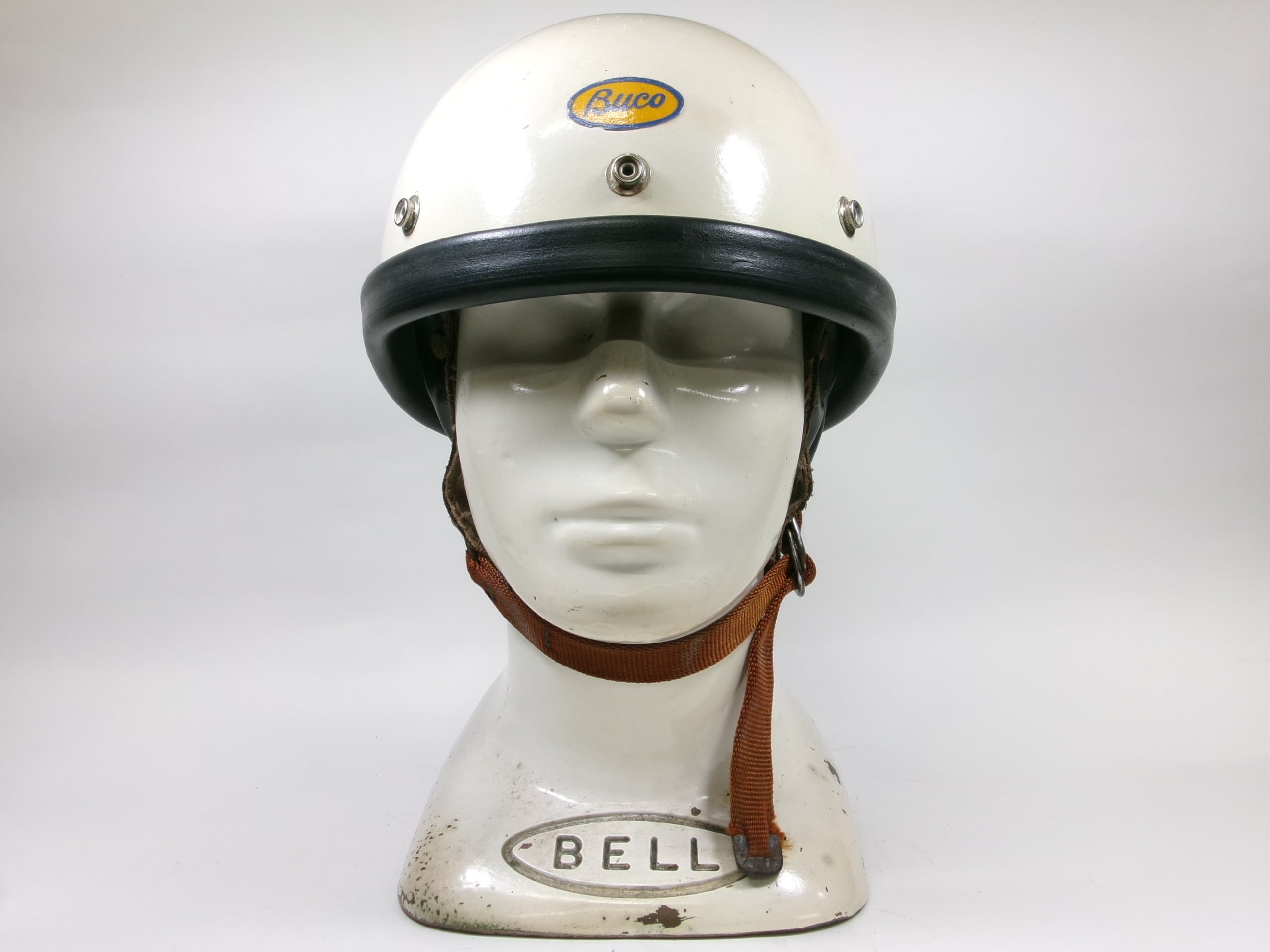 1960年製 BUCO GUARDIAN ハーフヘルメット Sシェルです。この年代は通常フロントのデカールありませんが、こちらは前後デカールのつく希少な個体です。恐らく過渡期のものかと思います。