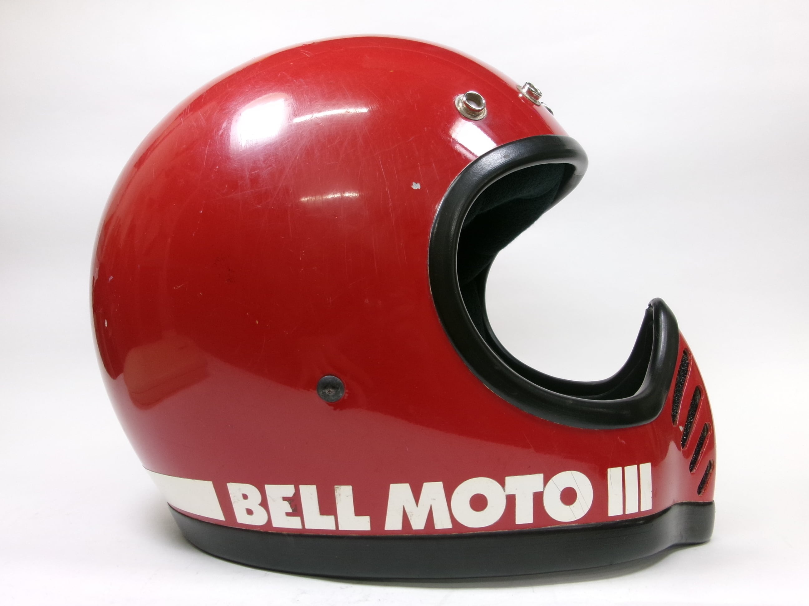 最初期 70s BELL MOTO 3 赤 7 1/8 フルフェイスヘルメット 目深加工済み M ★ 70年代 ベル モト3 スター MOTO STAR オフロード モトクロス