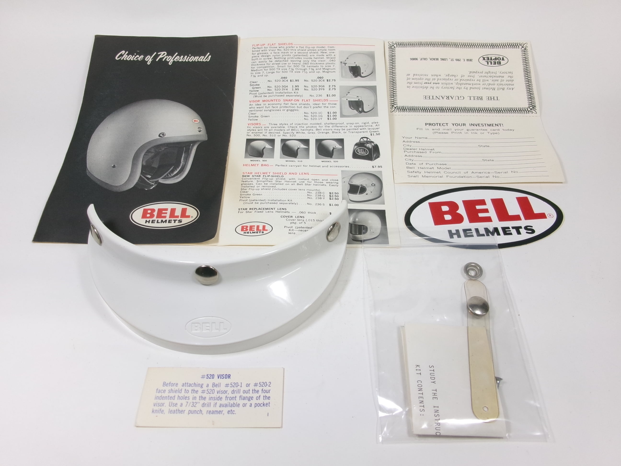 オリジナルBOXをはじめ、純正520バイザー、ゴーグルストラップ、カタログ、ステッカーなど付属品も完備。
