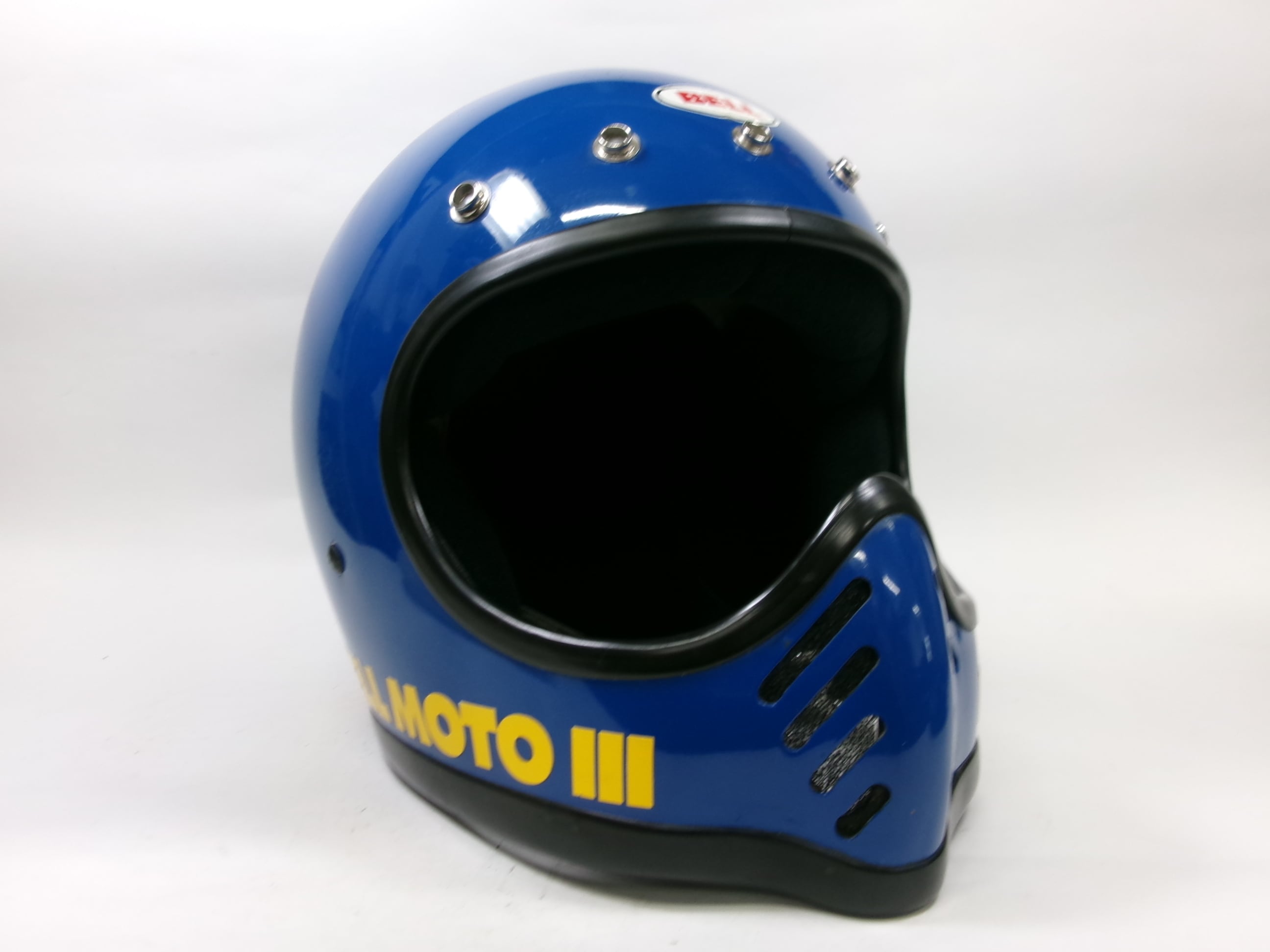 最初期! 70s BELL MOTO 3 青x黄 7 3/8 目深加工済み M★ ベル モト3 モトスター MOTO III 500TX STAR オフロード モトクロス ダートバイク